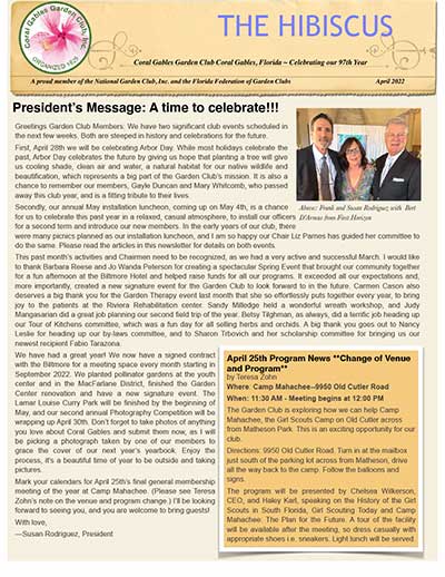 Coral Gables Garden Club Hibiscus newsletter April-May 2024