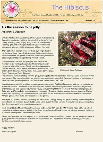 Coral Gables Garden Club Hibiscus newsletter December 2023